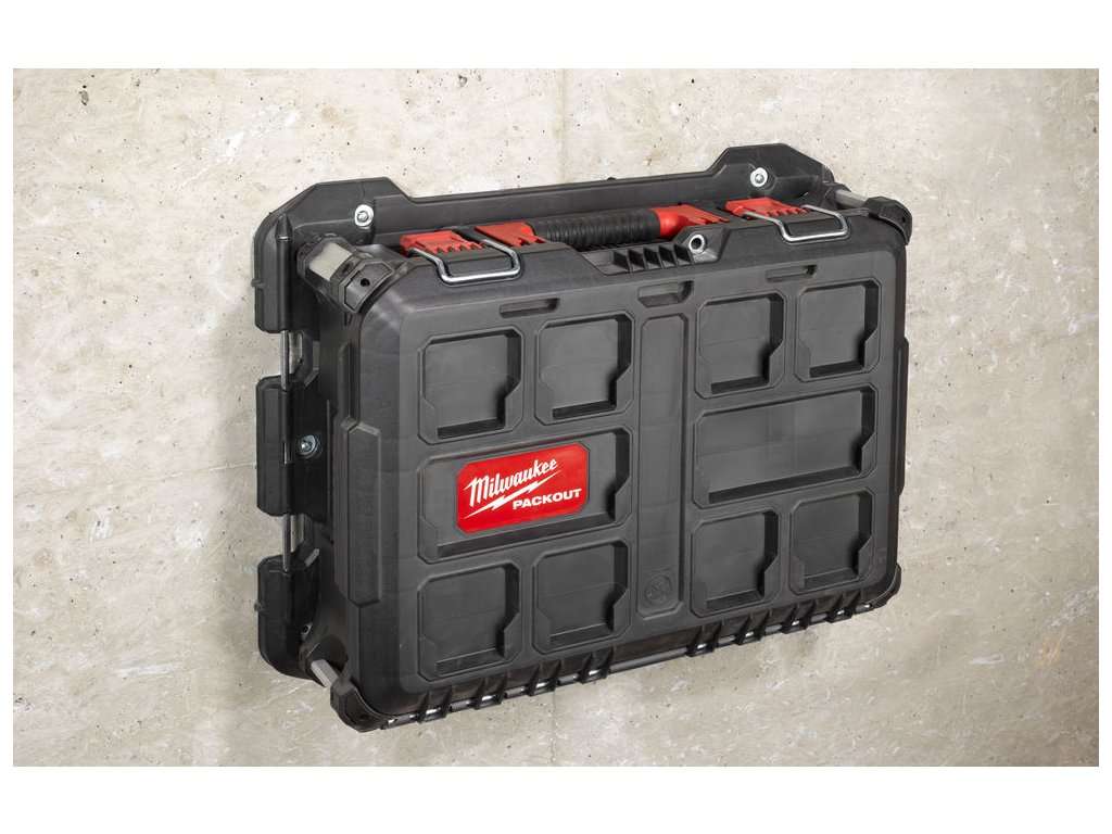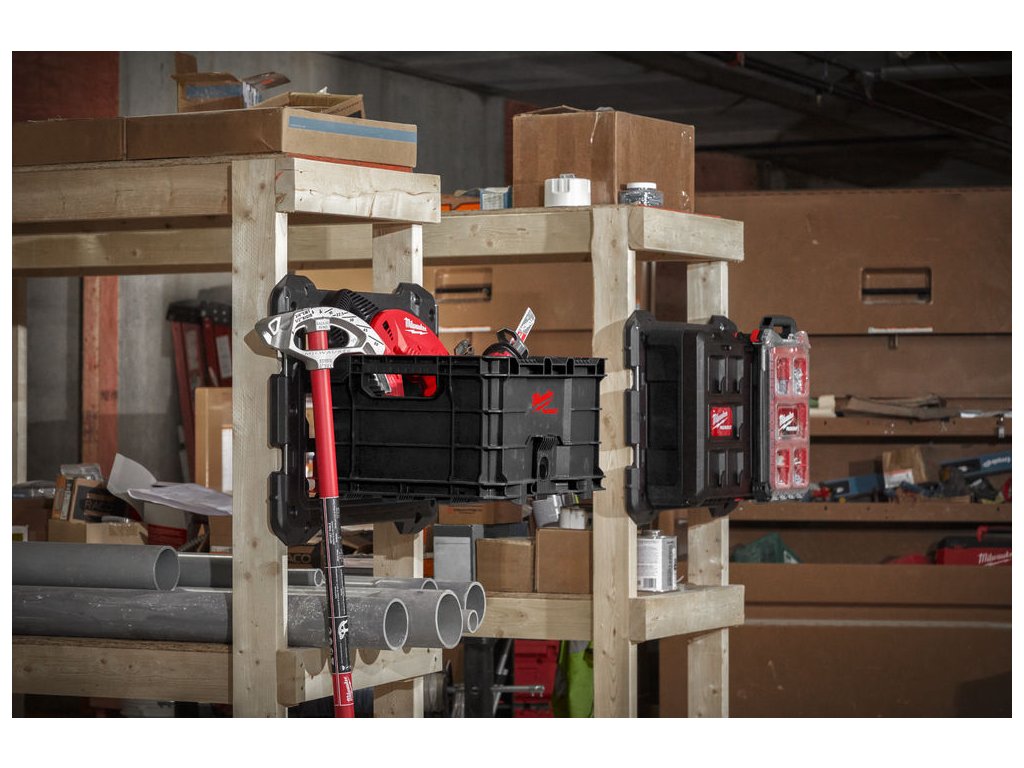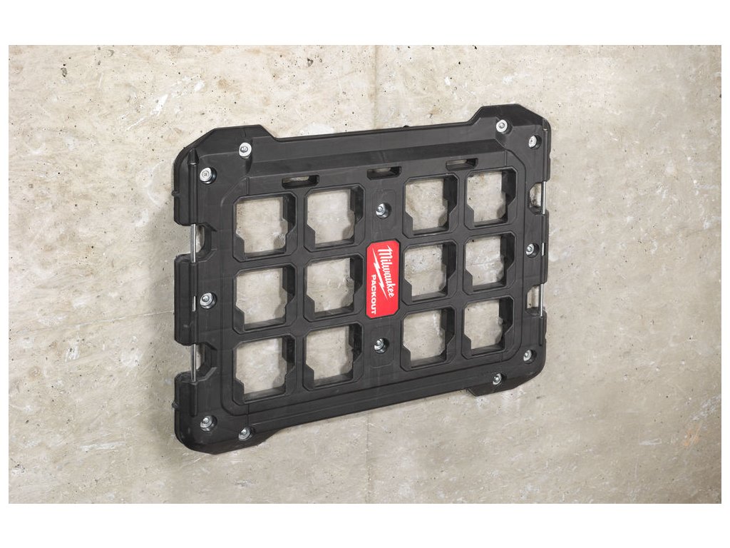 - umožňuje pripevnenie modulov PACKOUT™ k múru (max. nosnosť 22 kg) a k podlahe (max. nosnosť 45 kg)