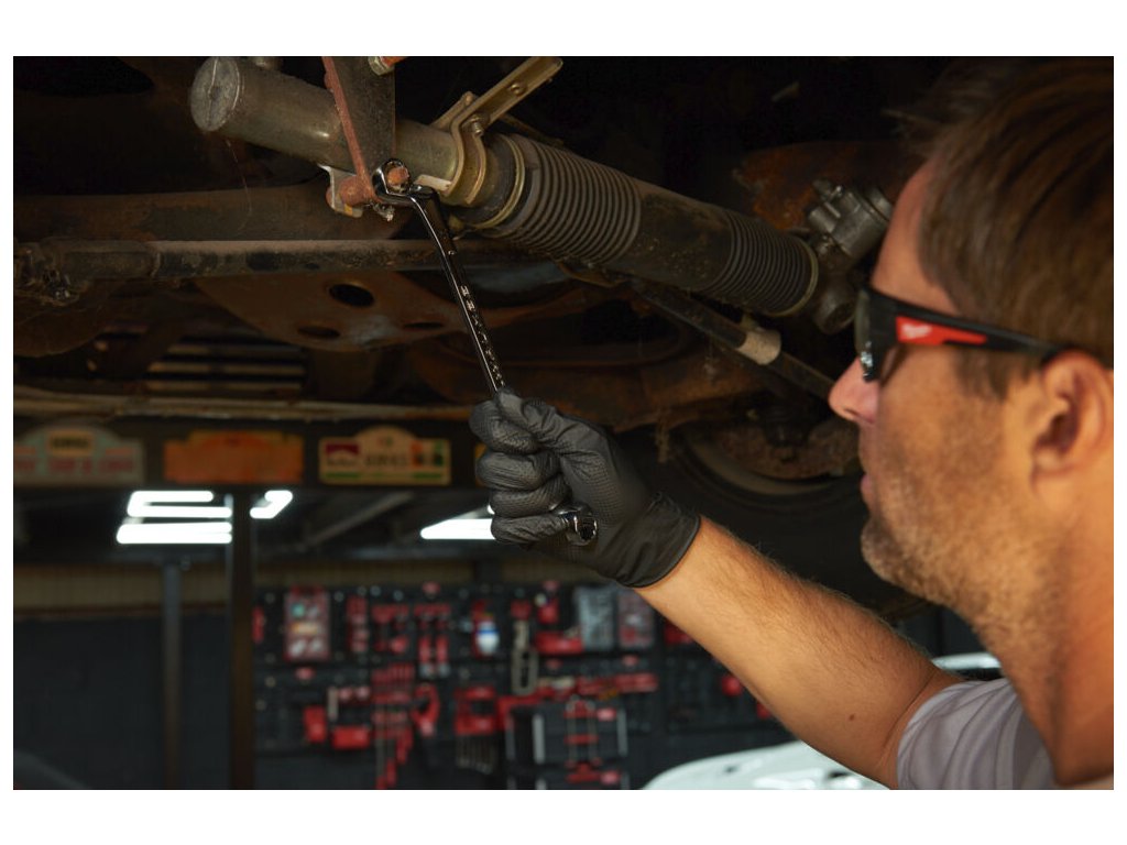 - chemická odolnosť ideálna na ochranu pred olejmi, benzínom, riedidlami, brzdovými kvapalinami a rozpúšťadlami bežne používanými v autoservisoch
